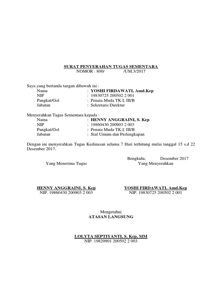 Surat Penyerahan Tugas Sementara Pdf